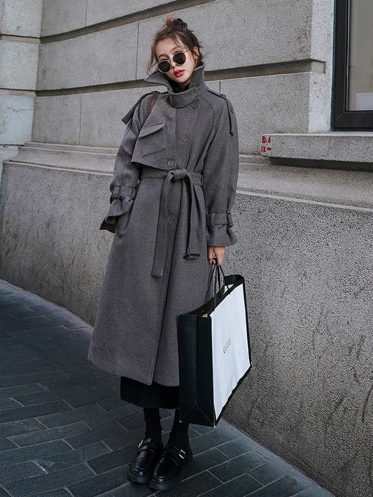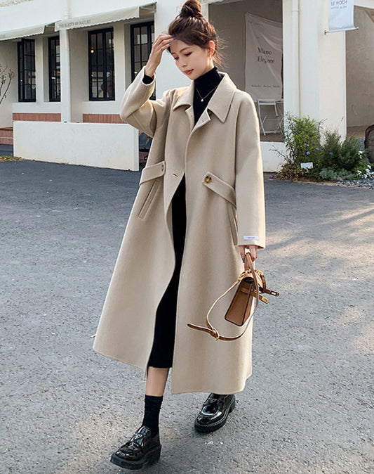 Középhosszú alkalmi gyapjú bő női kabát