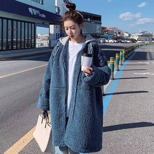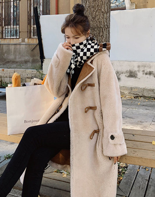 Szarv Báránybunda egyrészes téli kapucnis pamut női kabát