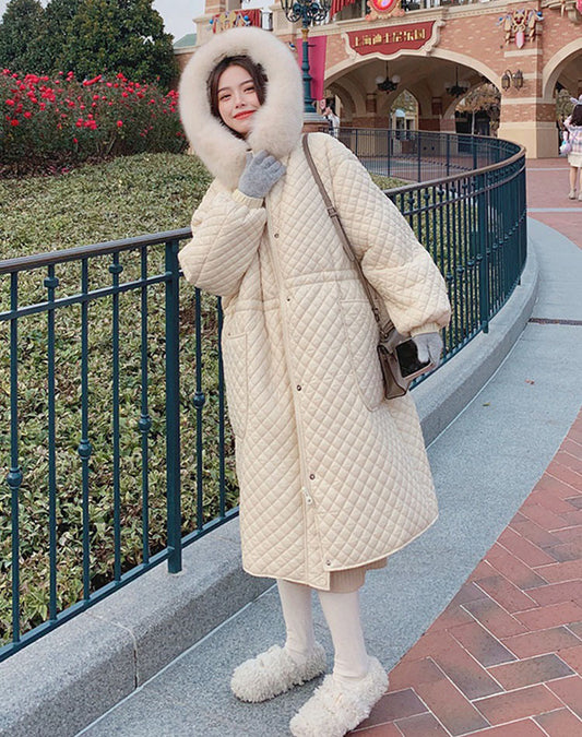 Gyémánt téli vastagított felsőkategóriás középhosszú pamut női kabát