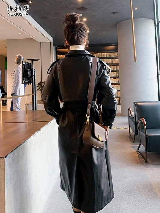 Fekete PU bőr közepes hosszúságú divatos női dzseki