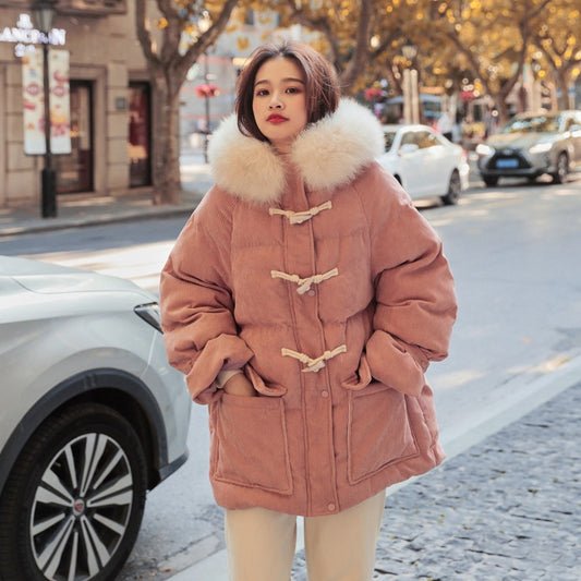 Corduroy Horn Buckle téli pamut női dzseki