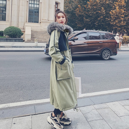 Pamut párnázott plusz bársony téli bő női kabát