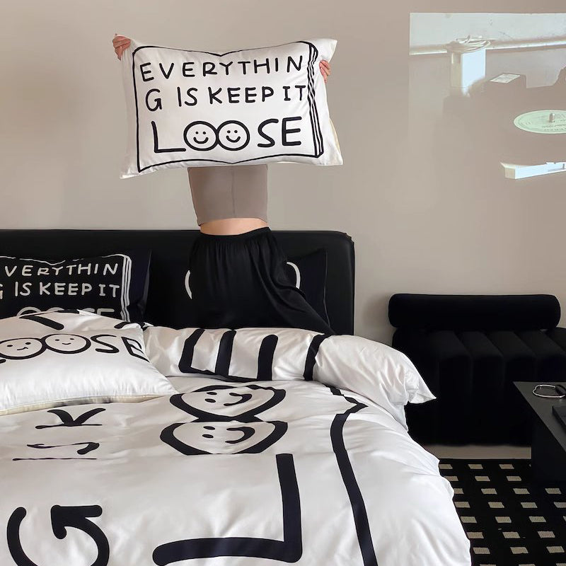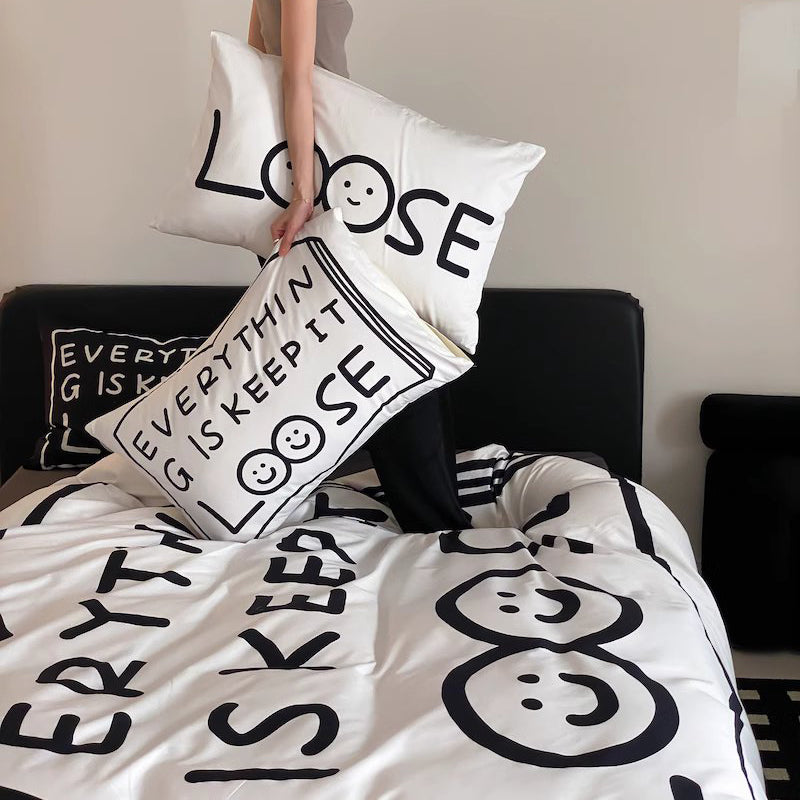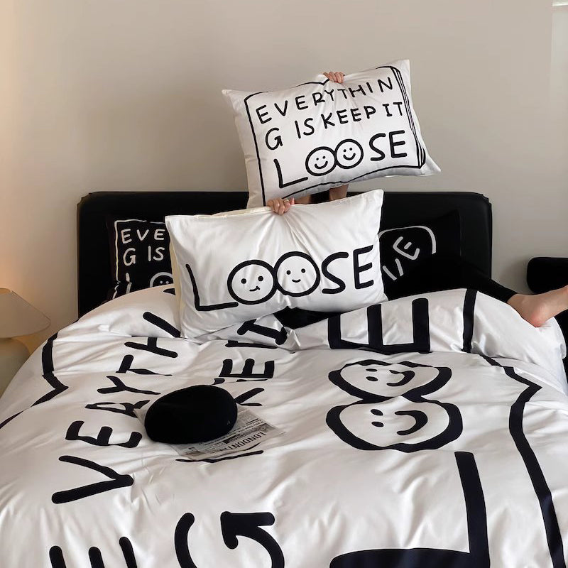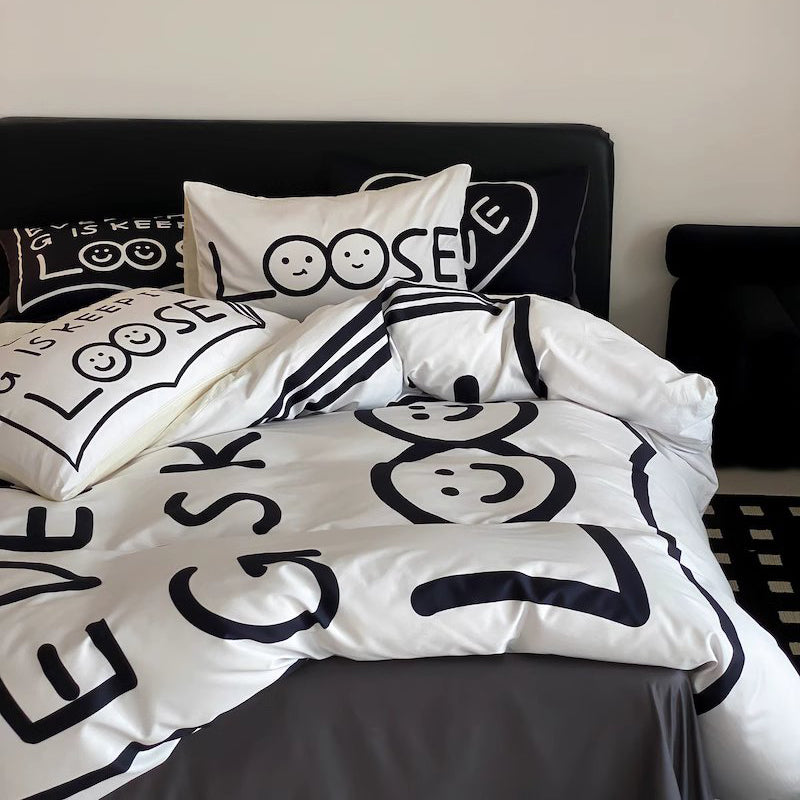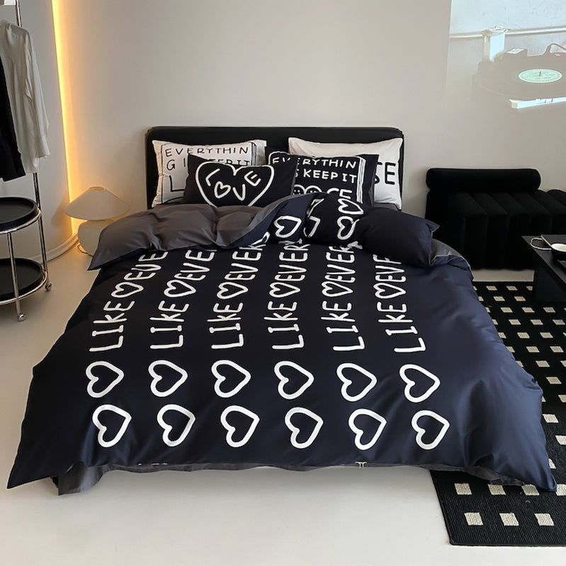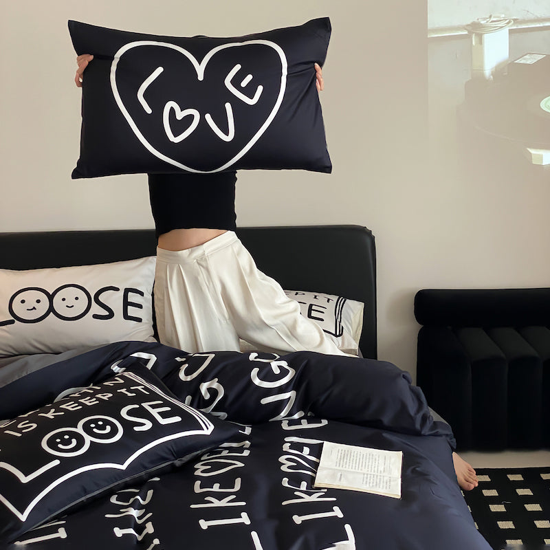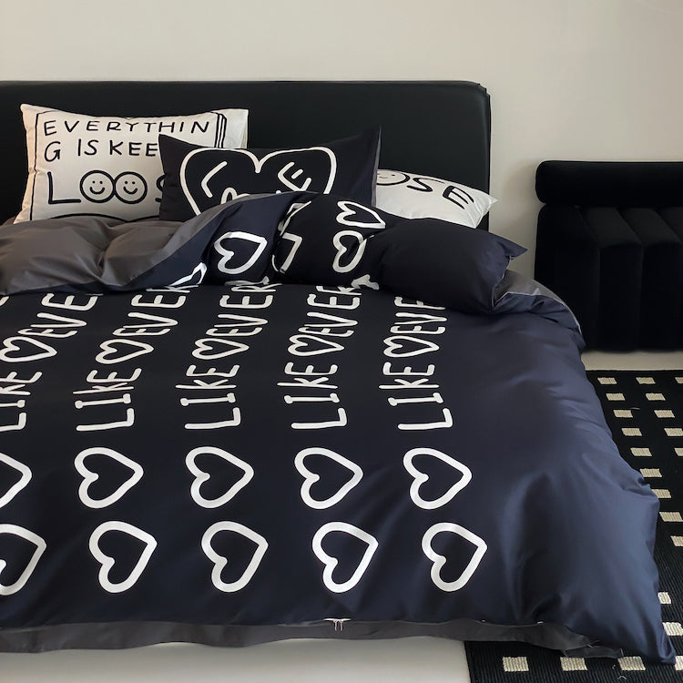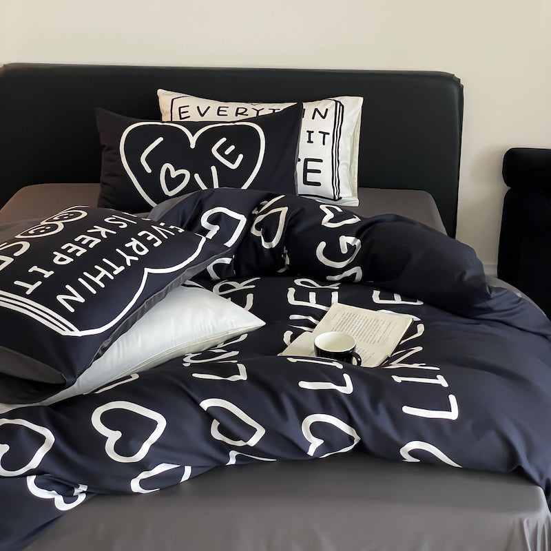 Fekete Love Pure Cotton négyrészes fekete-fehér ágyszett