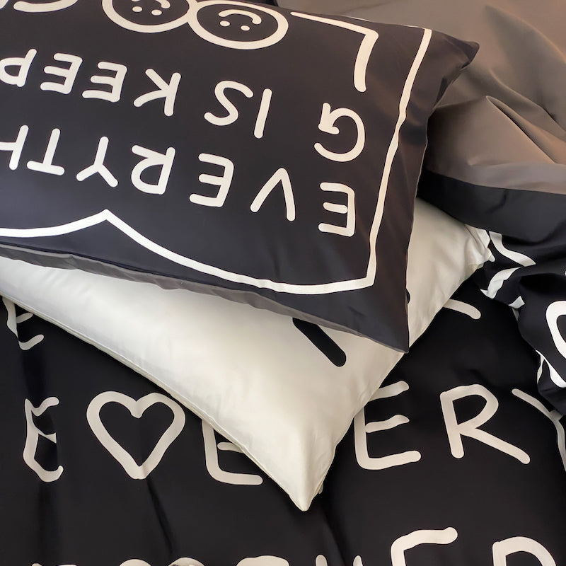 Emelje fel hálószobája stílusát a Black Love Pure Cotton négyrészes fekete-fehér ágygarnitúrával. Ez az ágyneműgarnitúra az egyszerű eleganciáról szól, a fekete szívecskéket és a fehér betűket kombinálva elegáns és modern megjelenést teremt. Legyen szó teljes, queen- vagy king-size ágyról, ez a szett tökéletesen illeszkedő paplanhuzatával betakarja Önt.