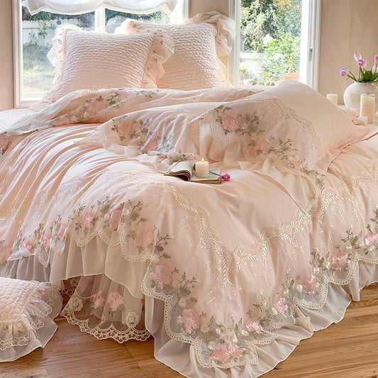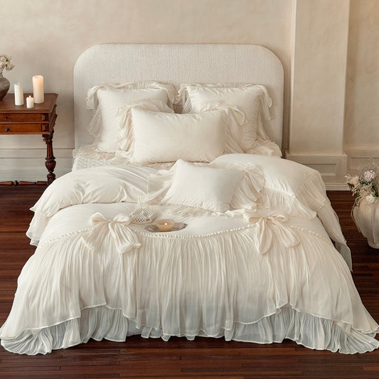 French Girly Lace-Trimmed Bow Princess Four-Piece Cotton Long-Staple Bed Set