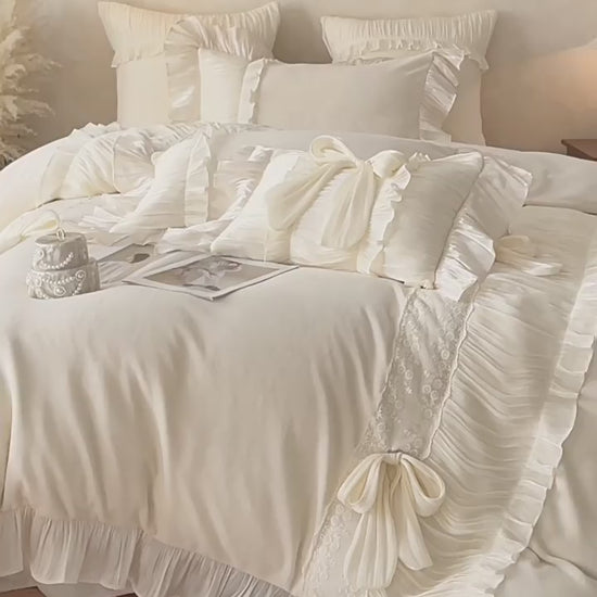 The elegant beige color creates a clean and simple vibe that fits any bedroom style. The lace trim and cute bow knot details add a touch of charm that makes your bed look dressed up without trying too hard. You get that effortless French look that makes your space feel soft, warm, and stylish.