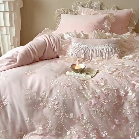 The lace and floral details add a sweet romantic charm that brightens your entire room. The soft pink and soothing green tones bring a fresh, elegant vibe that fits any simple or modern style. Your bed instantly looks softer, warmer, and more inviting with zero effort.
