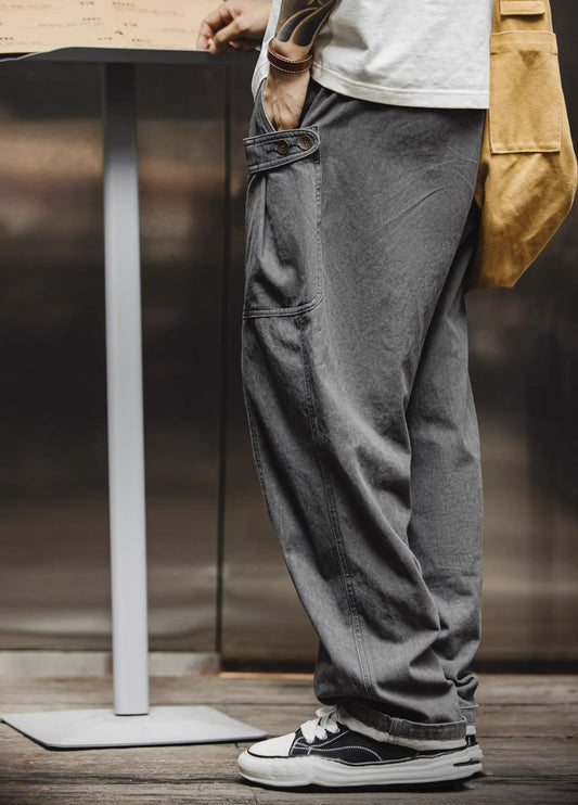 Pantaloni larghi da uomo larghi color ghiaccio con tasche multiple retrò americane