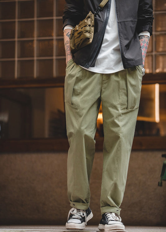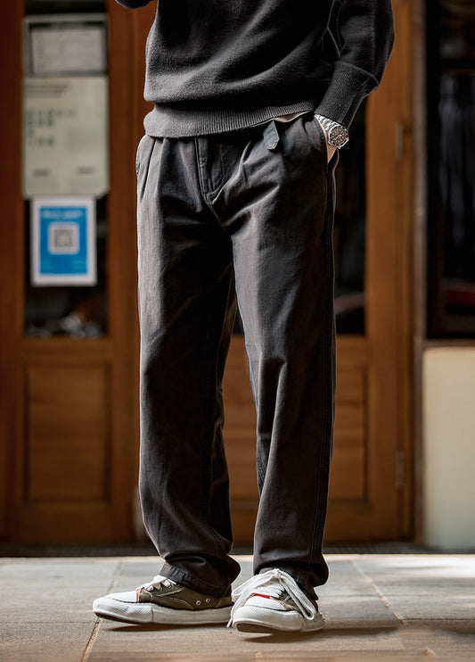 Pantaloni larghi da uomo larghi in cotone casual americano con doppia piega