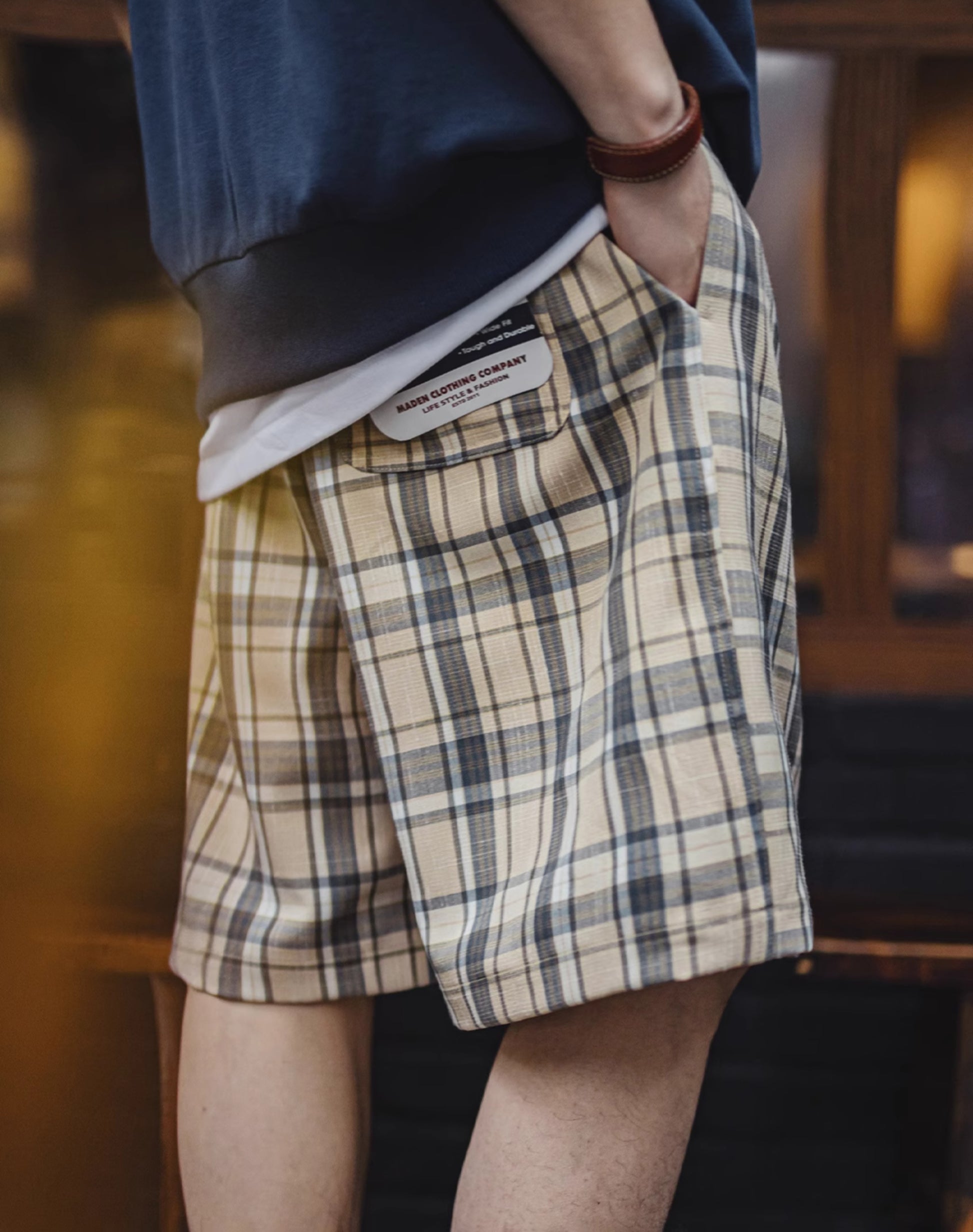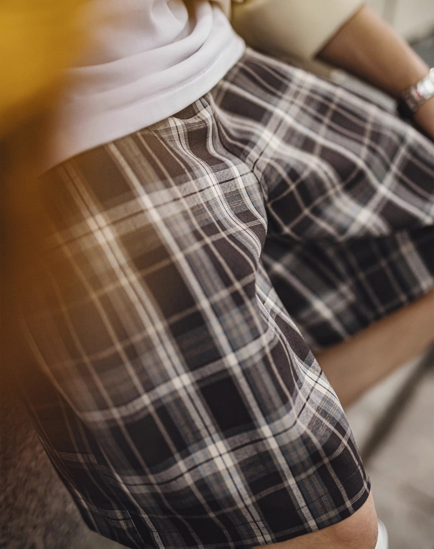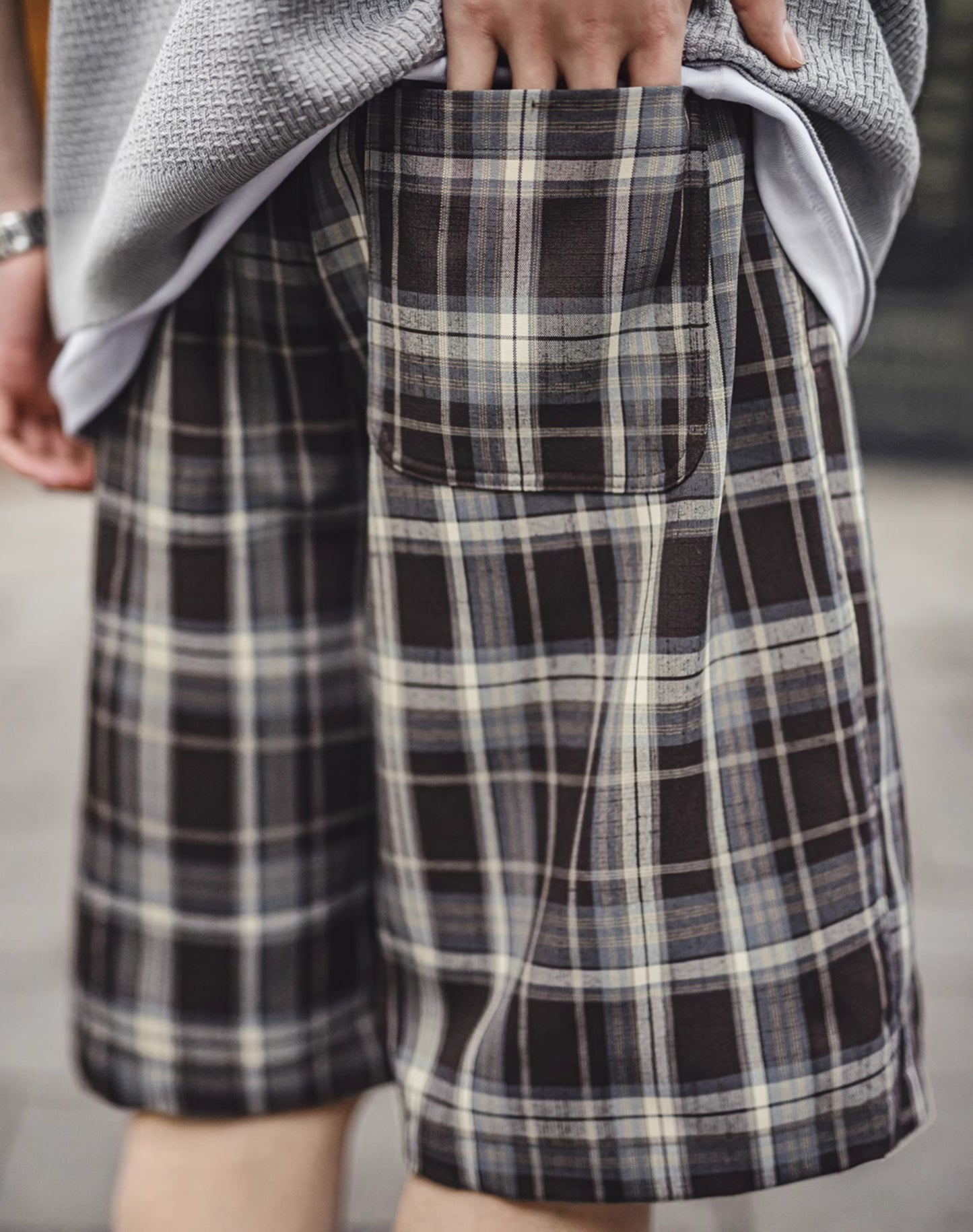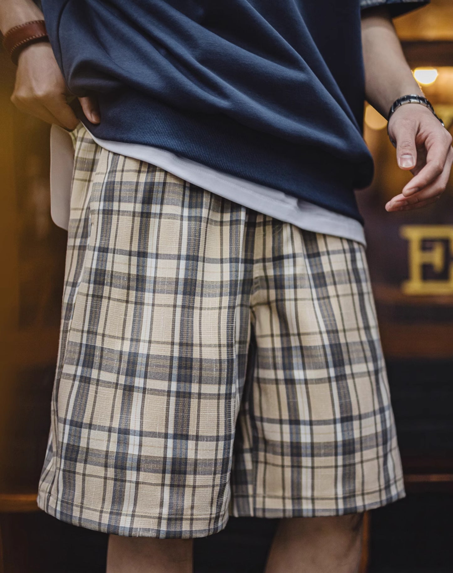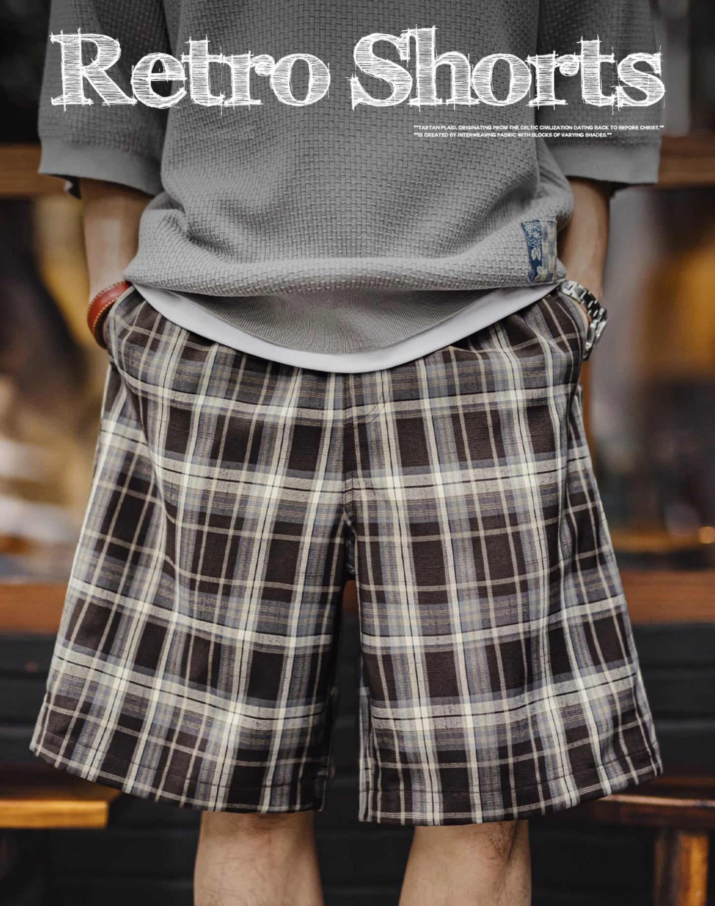 American Retro Scottish Plaid Straight Loose Drawstring Thin Men's Shorts
