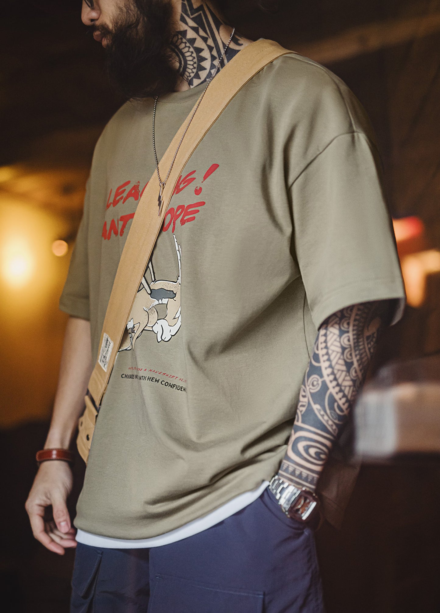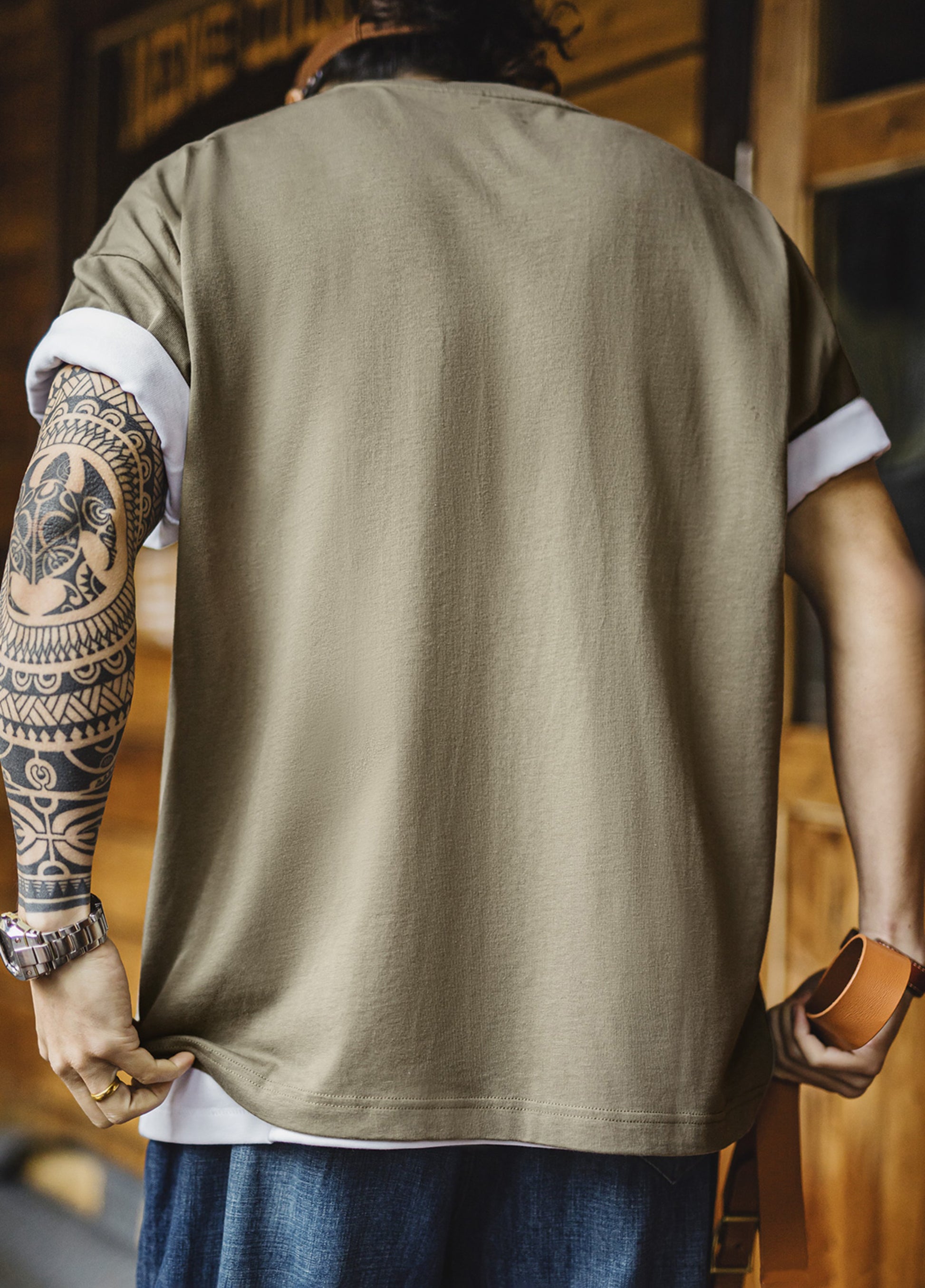 Made from 100% cotton, this tee feels soft but tough. It breathes well, so you stay cool even when things heat up. The loose fit means comfort all day without that clingy, sweaty feel. Just smooth, easy movement from morning to night.