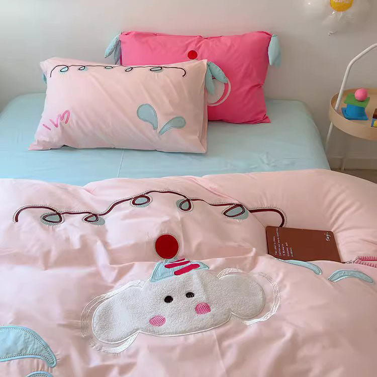 Czteroczęściowy komplet pościeli z czystej bawełny w kształcie dziewczęcego słonia w kształcie serca