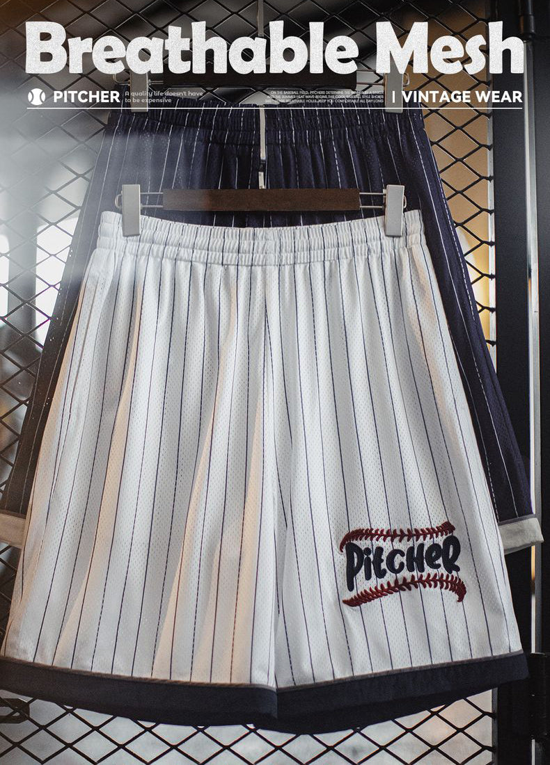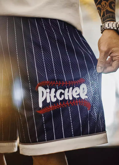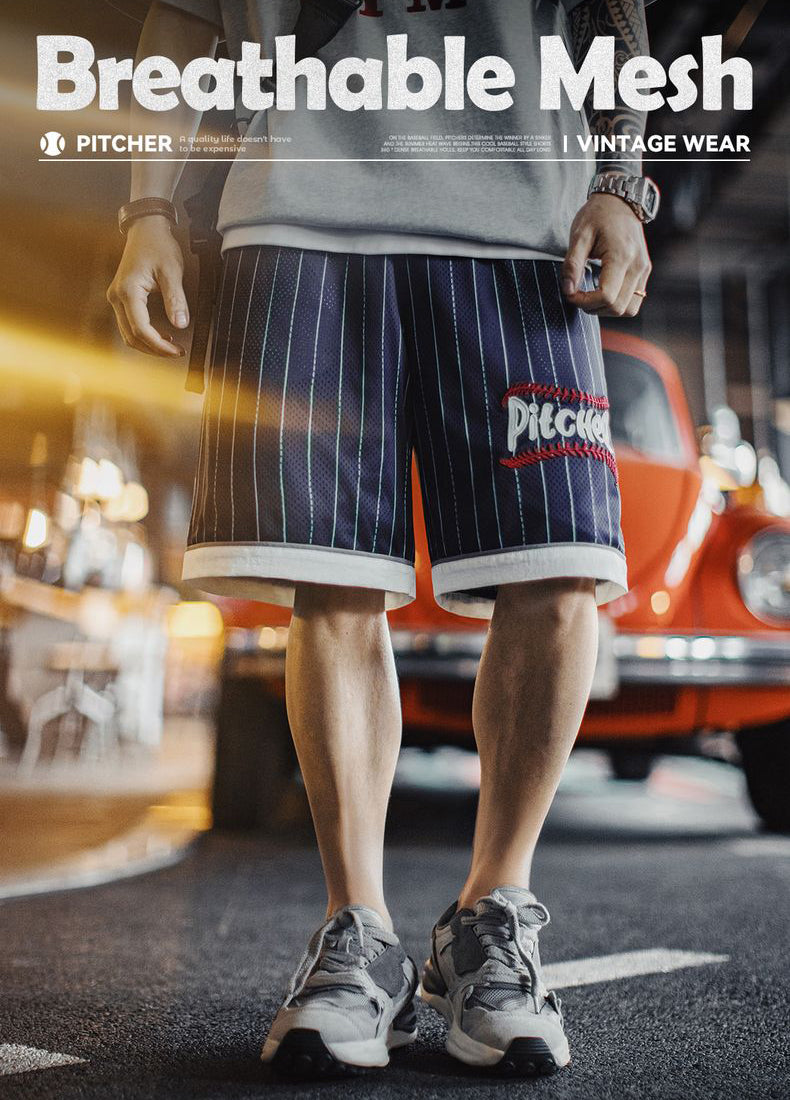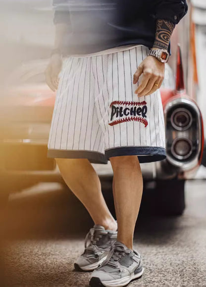 American Retro Basketball Mesh Loose Embroidered Baseball Men's Shorts