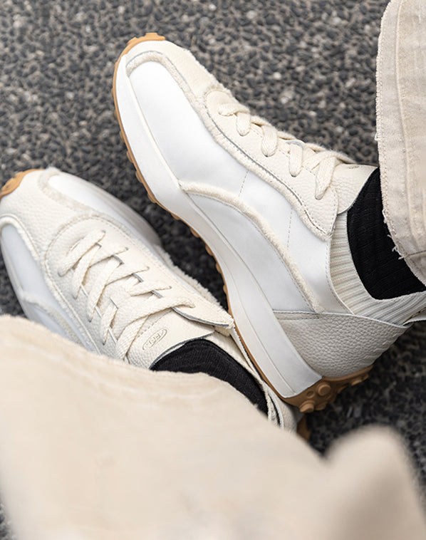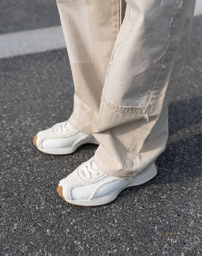 The clean white color and color block pattern make these sneakers super easy to style. They go with joggers, jeans, or cargo pants—basically, your entire closet. Whether you're heading to the city, chilling with friends, or just keeping it casual, these sneakers complete the fit without trying too hard.