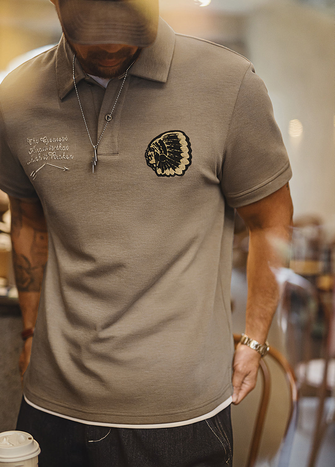 American Retro Embroidered Polo Heavyweight Straight Shoulder Men's T-Shirt