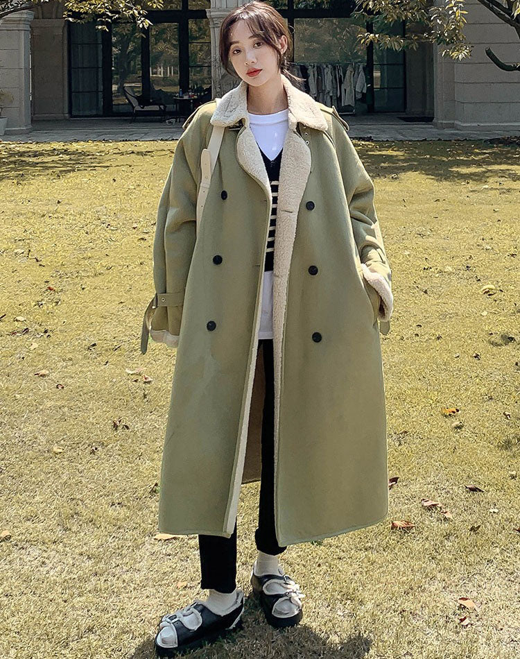 Suede Lambswool Winter Fur-Integrated Velvet Cotton Women's Coat