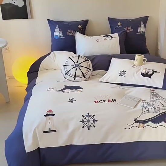 The blue and white color combo feels fresh and calming. The cute ship pattern adds a playful touch without going overboard. Whether your little one dreams of sailing the seas or just wants a cool bed, this set nails it.