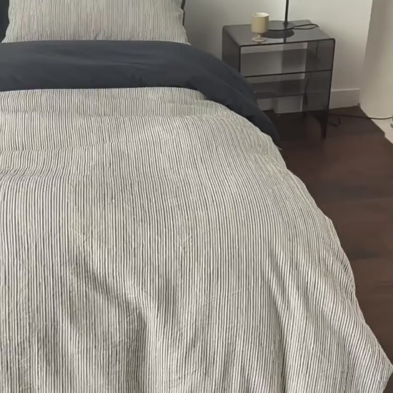 Premium Black and White Striped Textured Bedding Pure Cotton Four-Piece Bed Set