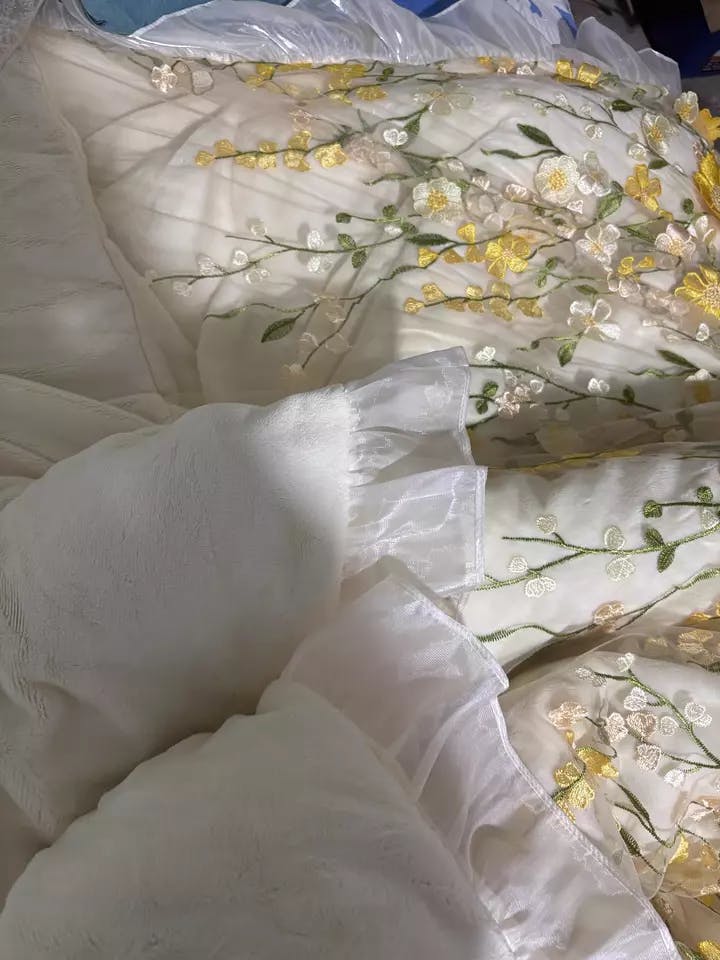This is a high-quality four-piece bedding set. I've already bought three sets from this store. It's much cheaper than in physical stores. The embroidery is exquisite, the fabric is soft against the skin, the style is elegant, and the workmanship is excellent. You can buy with confidence.