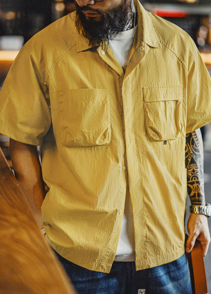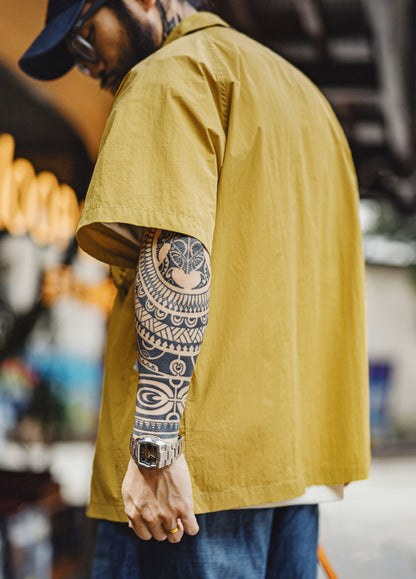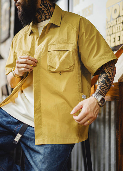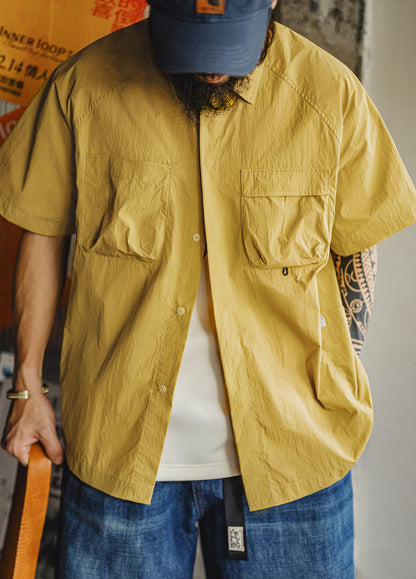 The loose fit gives you room to move. Climb, camp, walk, or just hang out—this shirt won’t hold you back. The simple lapel collar adds a rugged touch, and the solid army green or bold yellow shades bring that outdoorsy vibe with zero effort.