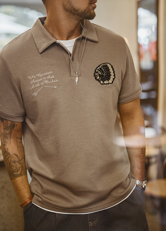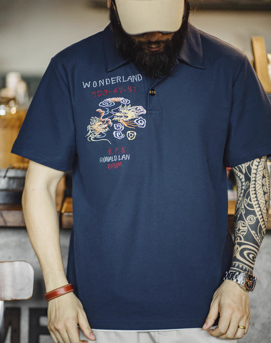 American Workwear Retro Broderad Polo Stickad T-Shirt för män