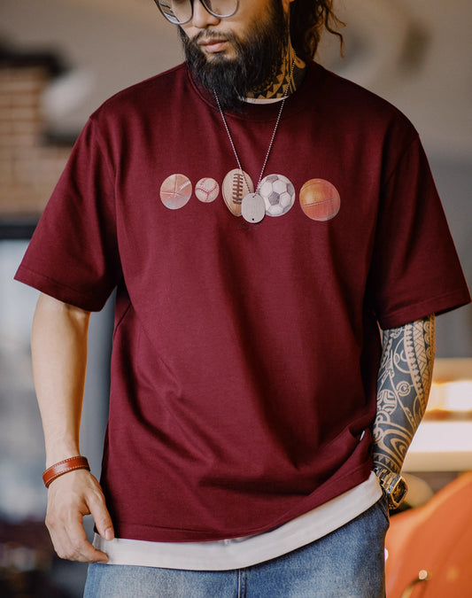 American Retro Ball Elements Digitaltryck Street Cotton T-shirt för män