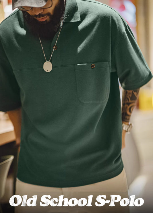 American Retro Mountain Green Polo Heavy Loose College Half Sleeve Men's T-Shirt