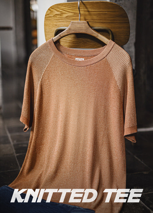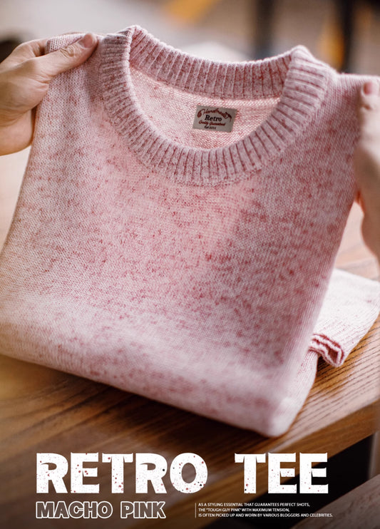 American Mottled Pink Knitted Drape Breathable Thin Threaded Neckline Men's T-Shirt
