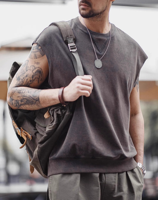 American Wasteland Style Gammal bred axelväst Ribbad T-shirt för män