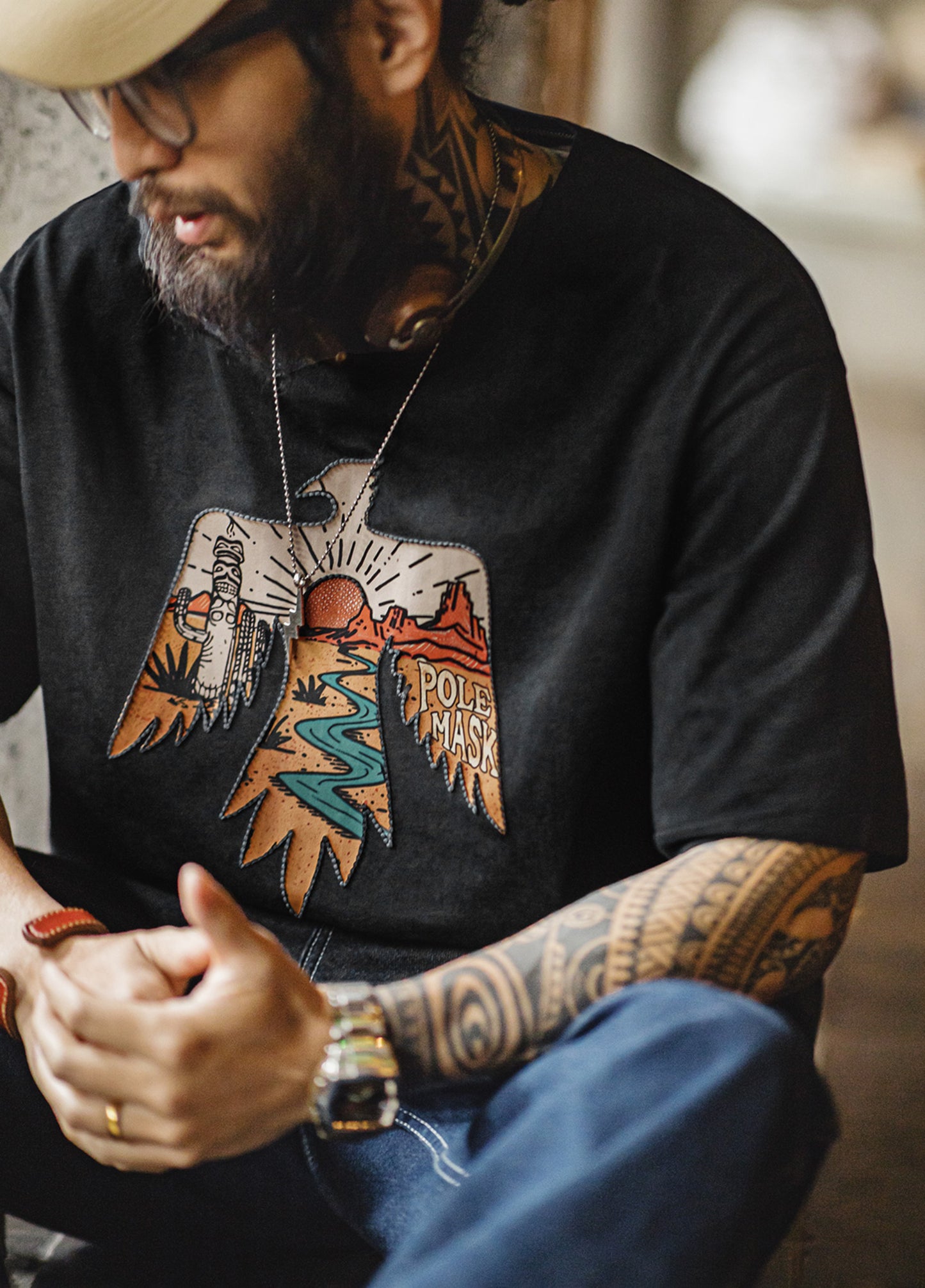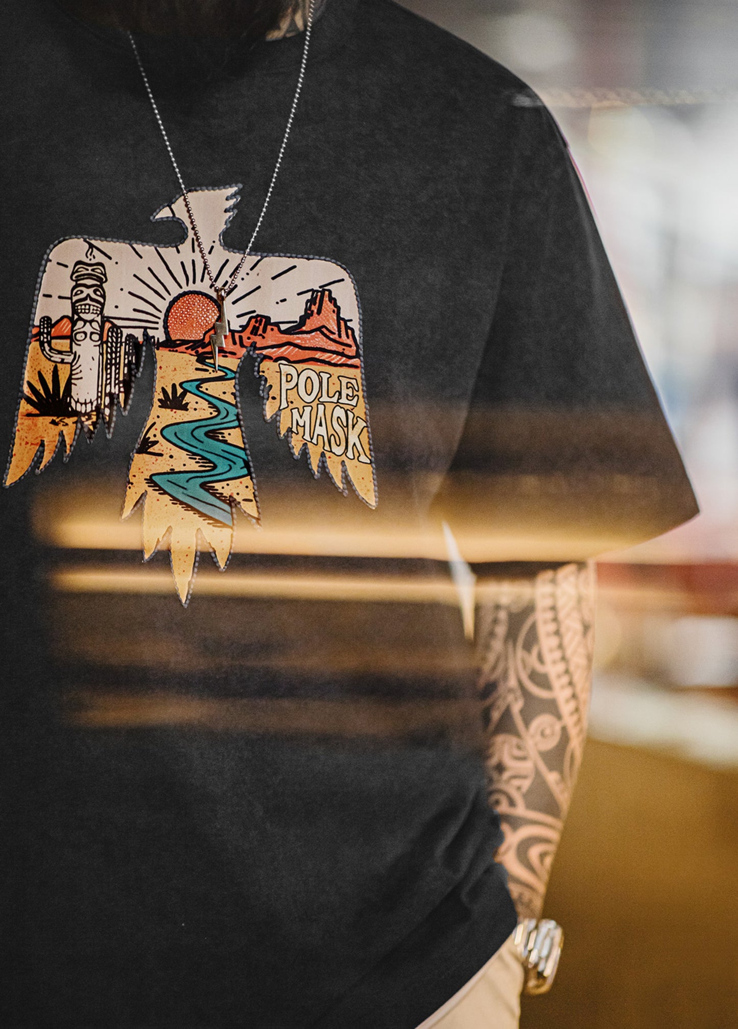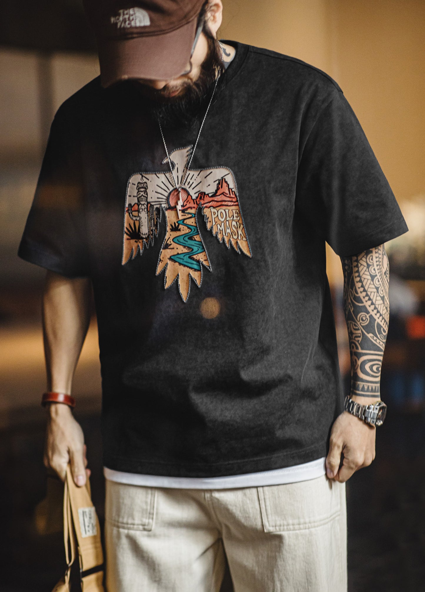 The real game-changer? That bold Thunderbird embroidery. It gives the tee some serious edge with a touch of vintage Native American-inspired style. The ethnic design brings a cool twist to a classic look. You won’t just blend in—you’ll stand out without even trying.