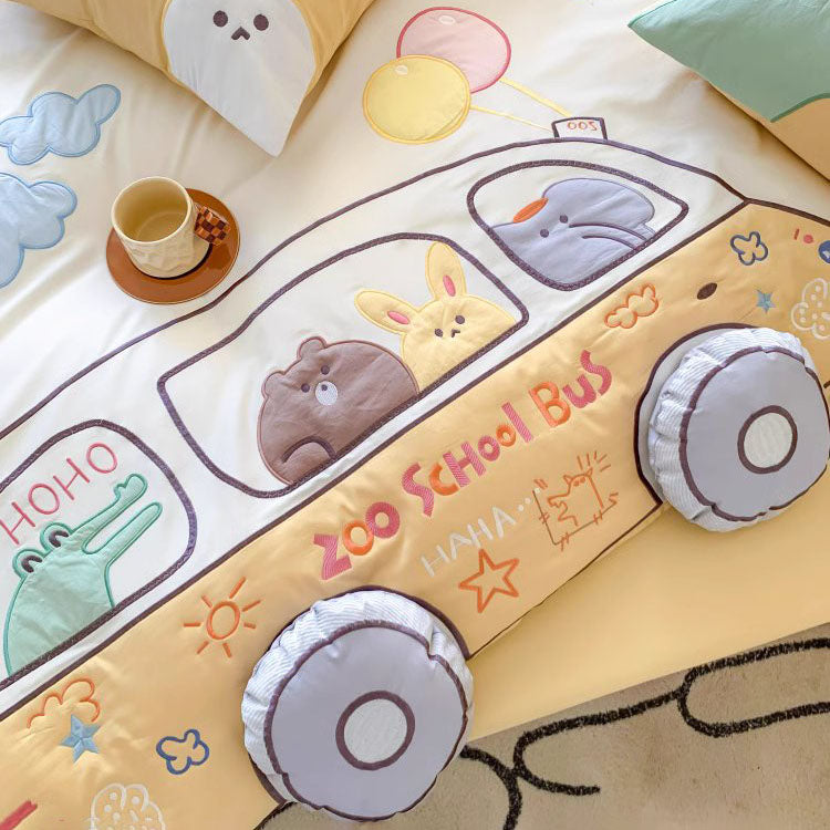 Gör dig redo att lägga till lite kul till läggdags med vår Cartoon Happy Bus Zoo School Bed Set! 🚌