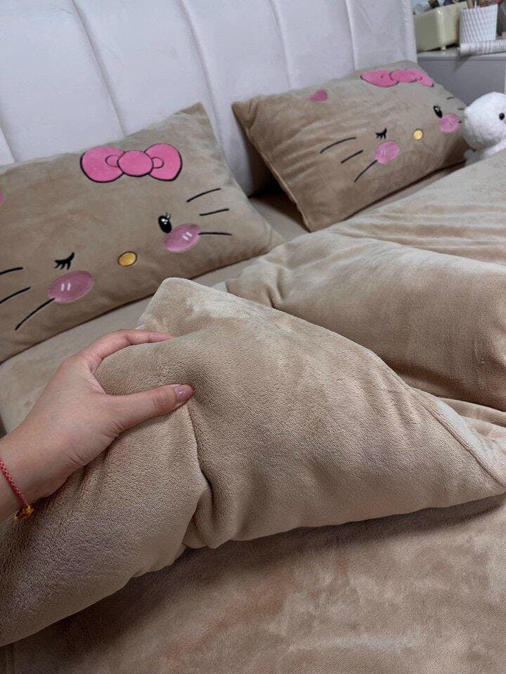 Children's Hello Kitty Little Milk Fleece Cartoon Winter Four-Piece Bed Set