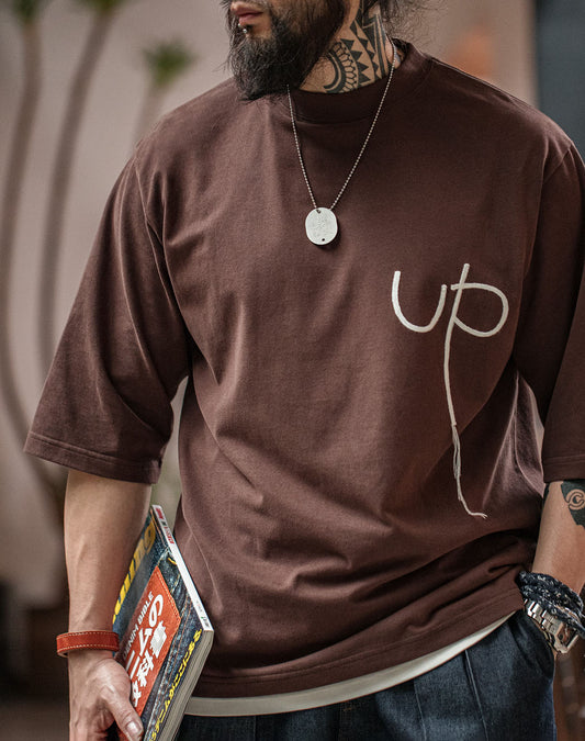 Amerikan Rahat Mektup Nakış Pamuk Gevşek Erkek Tişört