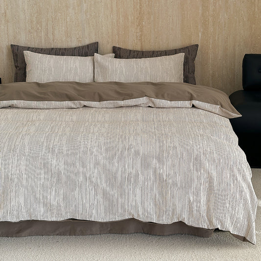 Premium Black and White Striped Textured Bedding Pure Cotton Four-Piece Bed Set