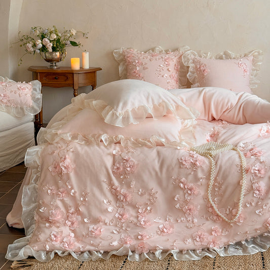 Fransız Prensesi High-End Saf Pamuklu Fırfırlı Dört Parçalı Yatak Seti